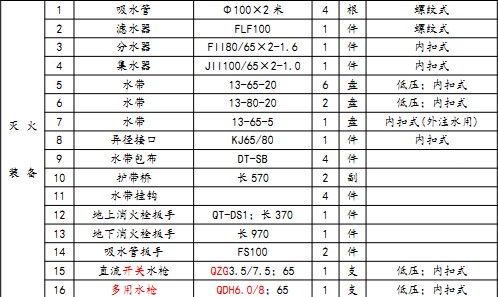 3)底盤質量保修卡 9)消防車消防器材清單